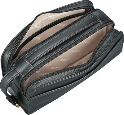 縦にも横にも持て収納力に長けた実力派ダブルファスナーで物を2室に分けて収納でき、出し入れも簡単。