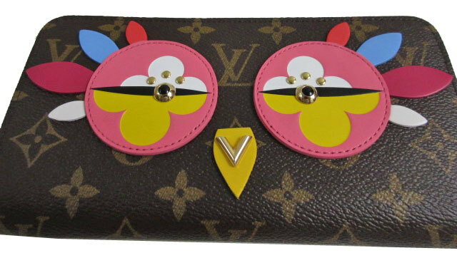 箱・内袋・紙袋完備 2017年春夏最新作限定品!モノグラム・フラワーや伝統的なリベット、ゴールドカラーの「V」ロゴなどクラシカルなメゾンのディテールで表現された愛らしい鳥をあしらった「ジッピーウォレット」。